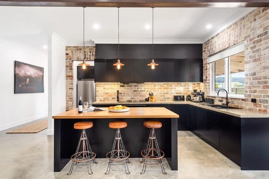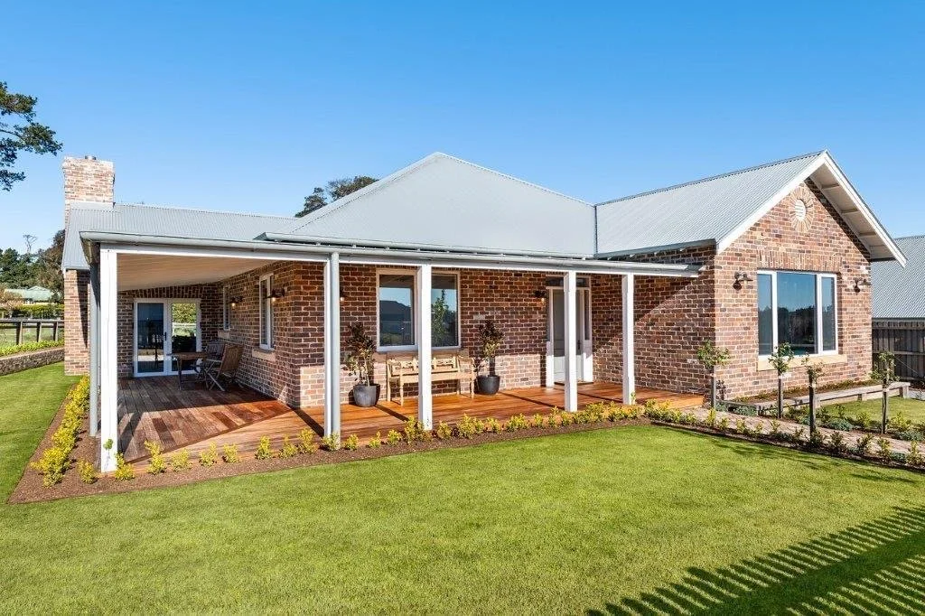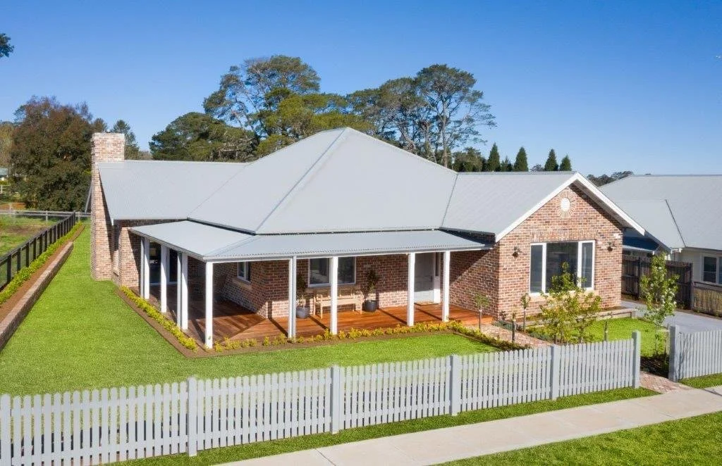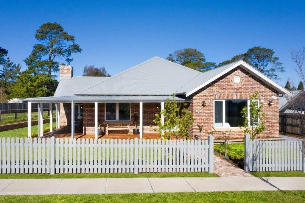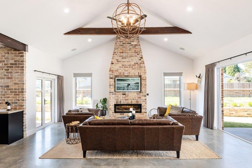This home set in Bowral’s Retford Park Estate was designed and built by Shane and Amanda Rofe. Deigned to look like a traditional Australian Brick cottage with an industrial edge. The home features recycled bricks, sandstone window sills, large North and West facing veranda, hydronic heated polished concrete floors, exposed steel beams and recycled railway sleeper collar ties